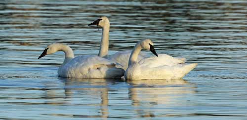Last December, though, the three swans returned, still together, still touching. They were all white now, fully adult. A proud sight to see them floating so gracefully in the bay. Another winter passed, and the swans flew again to the north when spring told them it was time to go.